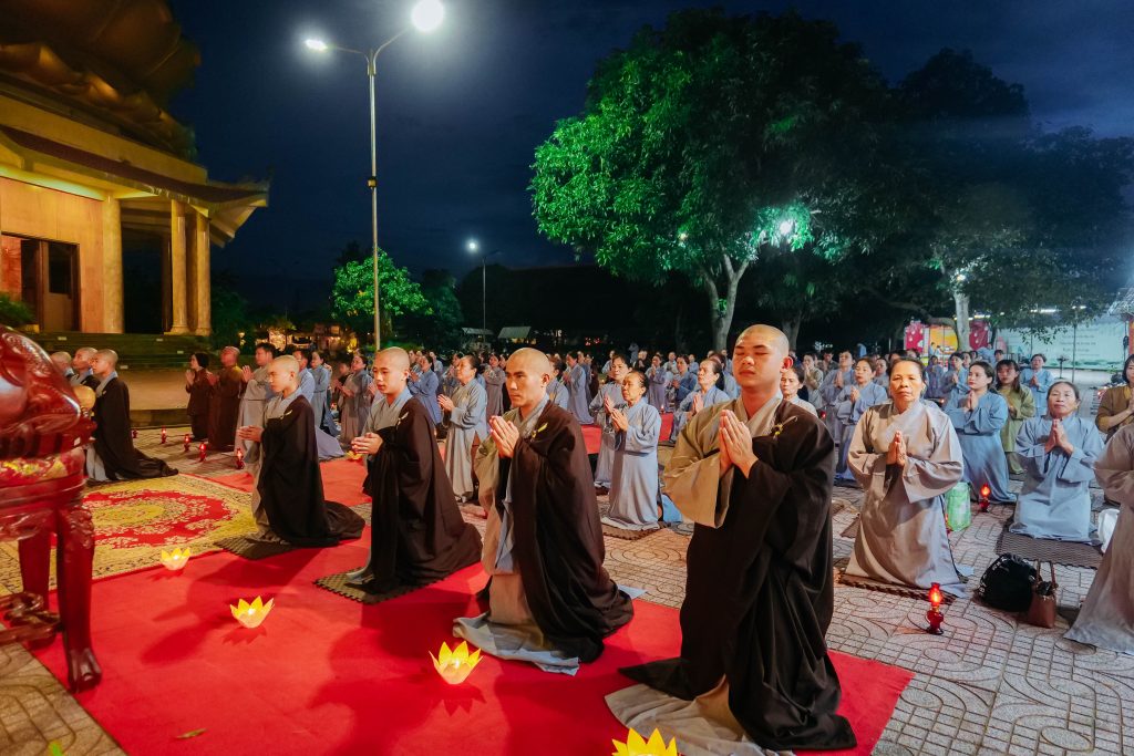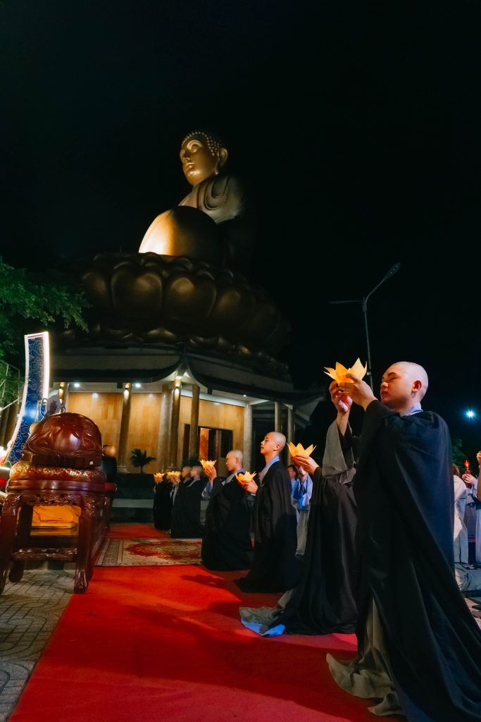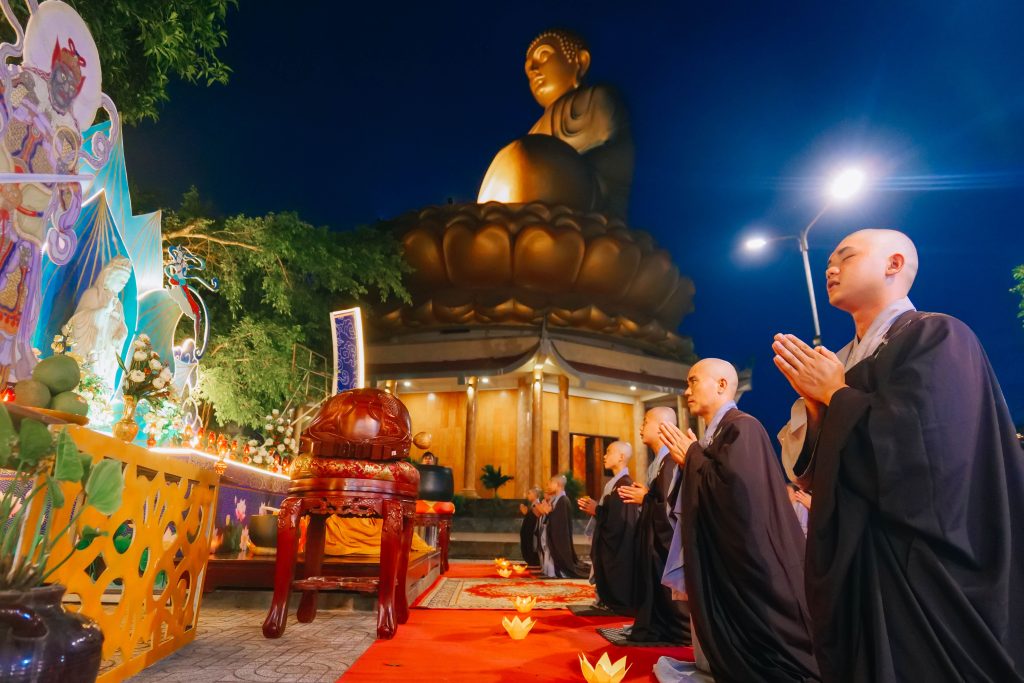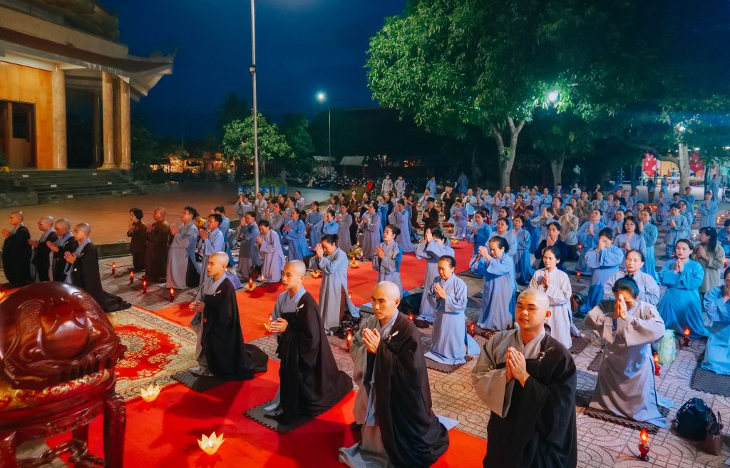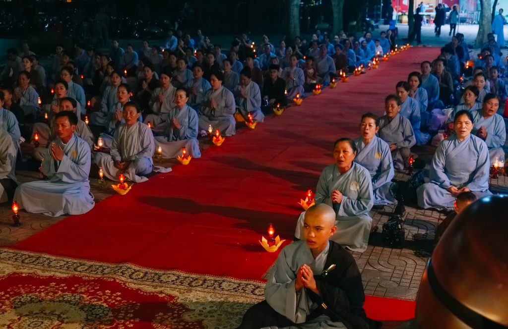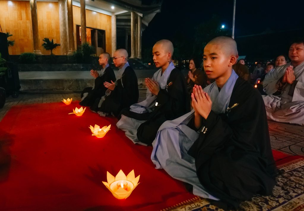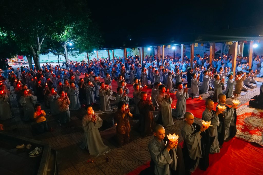 Tiếp nối nghi thức, với tâm thành kính, đại chúng đồng khởi thân đứng dậy. Từng bước chân nhẹ nhàng, chậm rãi tiến về bàn thờ, nâng niu đặt lên đó những ngọn đèn đã thắp. Mỗi ánh lửa nhỏ bé ấy không chỉ là biểu tượng của niềm tin son sắt, của lòng thành kính vô bờ, mà còn là hiện thân cho những lời nguyện ước chân thành, cho khát vọng bình an, trí tuệ và giác ngộ. Mỗi ngọn đèn thắp lên là một lời nguyện noi theo ánh sáng từ bi của Bồ Tát Quán Thế Âm, lan tỏa rạng rỡ khắp không gian và trong sâu thẳm tâm hồn mỗi người.