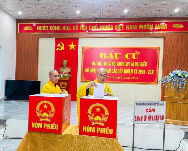 Sáng ngày 15/3/2026, chư Tăng chùa Phúc Lạc (xã Đông Lộc, tỉnh Nghệ An) đã tham gia bỏ phiếu bầu cử đại biểu Hội đồng Nhân dân các cấp nhiệm kỳ mới tại khu vực bầu cử địa phương.