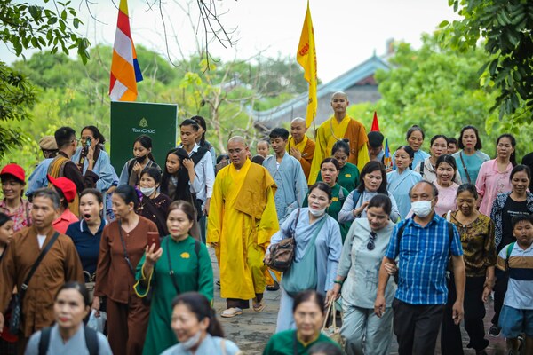 Chư Tăng và Phật tử chùa Phúc Lạc đi đảnh lễ Xá lợi Phật.