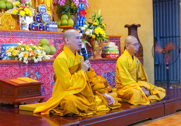 Sau đó, Đại Đức Thích Tâm Mạnh thay mặt chư tăng chùa Phúc Lạc gửi lời chia buồn sâu sắc đến các gia đình có thân nhân là nạn nhân trong vụ tai nạn chìm tàu tại Quảng Ninh và những mất mát của người dân sau ảnh hưởng của cơn bão vừa qua. Đại Đức cũng đã chia sẻ pháp thoại ngắn đến đại chúng nhằm nhấn mạnh tầm quan trọng của việc hành trì sám hối thường xuyên, để làm mới thân tâm, buông bỏ phiền não, nuôi dưỡng lòng từ và tích lũy thiện nghiệp