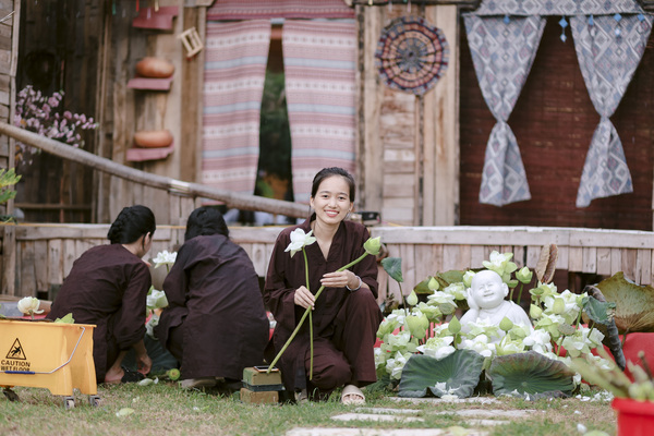 Sau khi ổn định chỗ ở, mọi người cùng nhau tham quan, khám phá vẻ đẹp thanh tịnh của ngôi chùa cổ kính. Từng bước chân nhẹ nhàng in trên lối mòn rợp bóng cây xanh, tiếng chim hót ríu rít như hoà cùng nhịp thở của đất trời. Khung cảnh nơi đây khiến tâm hồn mỗi người như lắng lại, xua tan mọi muộn phiền.