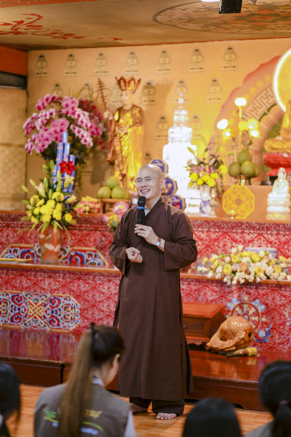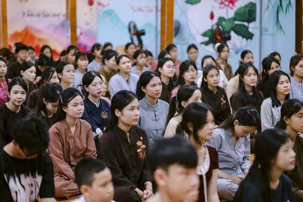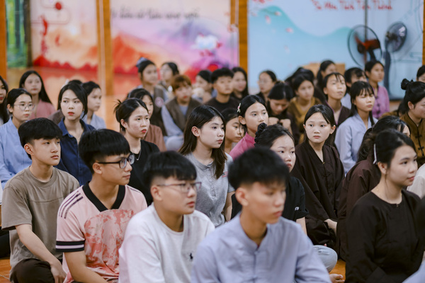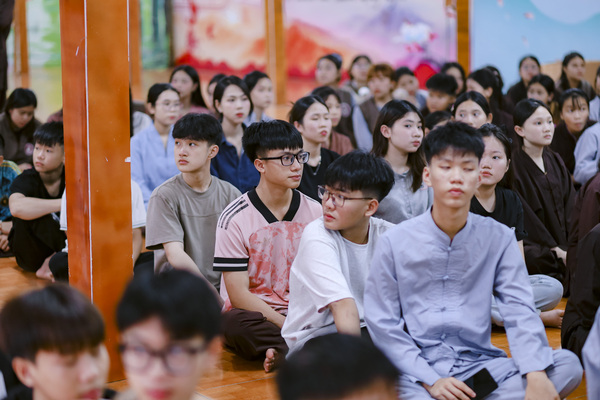 Tiếng chuông chùa vang lên báo hiệu giờ tập trung, các khoá sinh nhanh chóng quy tụ về giảng đường trong tâm thế nghiêm trang. Tại đây, Đại Đức Thích Quảng Thiện Phước đã từ bi giảng dạy những bài học sâu sắc về oai nghi– cách đi đứng, ngồi nằm sao cho giữ được sự tỉnh thức trong từng cử chỉ nhỏ nhất. Lời Thầy giản dị mà thấm đẫm trí tuệ, khiến ai nấy đều cảm nhận rõ giá trị của sự chánh niệm trong đời sống hàng ngày.