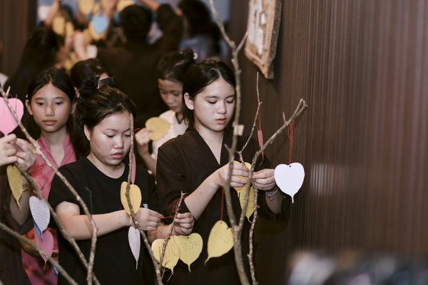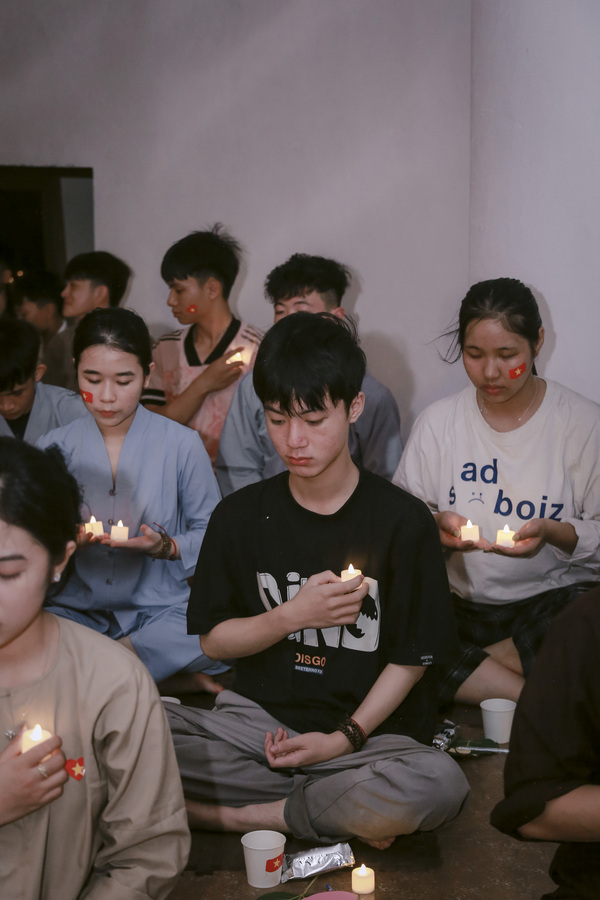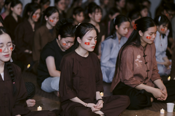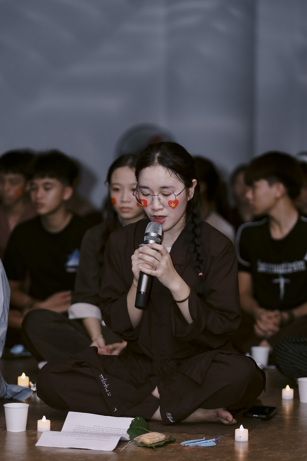 Mở đầu buổi tối, tiếng chuông ngân nga xé tan màn im lặng. Cả không gian như lắng đọng trong khoảnh khắc thiêng liêng khi mọi người cùng chắp tay hướng về miền Trung ruột thịt – nơi những mảnh đời còn đang oằn mình sau cơn thịnh nộ của thiên nhiên. Những giọt nước mắt âm thầm rơi xuống lòng bàn tay khép nép, thấm đẫm nỗi đau đồng loại. Trong phút chốc ấy, ranh giới giữa người quen kẻ lạ bỗng trở nên mong manh đến lạ, chỉ còn lại sự đồng điệu của những trái tim biết rung cảm trước nỗi đau nhân thế.