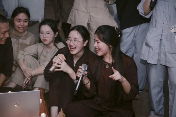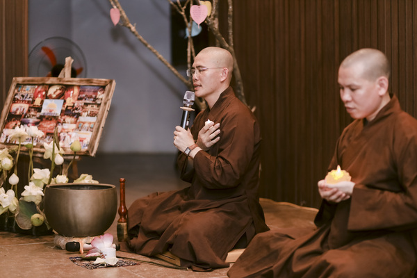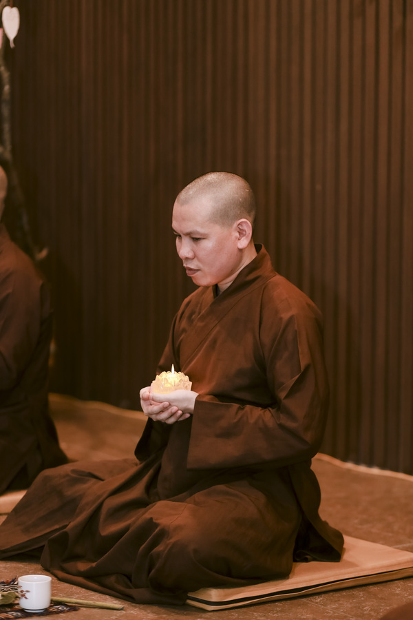 Đêm xuống nhẹ nhàng trên mái chùa Phúc Lạc, ngày 26/6/2025. Trong không gian thiền đường ấm áp, ánh nến lung linh hắt những bóng hình lặng lẽ lên tường gỗ. Từng làn khói trà mỏng manh bay lên, hòa vào không khí tĩnh tại. Đêm thiền trà không chỉ là thưởng thức hương vị trà, mà là hành trình trở về với bản thể, nơi mỗi người có thể buông bỏ gánh nặng đời thường để tìm lại sự bình an trong tâm hồn.