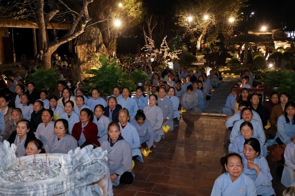 Kết thúc buổi lễ, toàn thể đại chúng đã nhất tâm hồi hướng công đức, nguyện cầu cho quốc thái dân an, thế giới hòa bình, chúng sinh an lạc, Phật pháp trường tồn. Trong ánh sáng dịu dàng của đêm hoa đăng, niềm tin và hy vọng được thắp lên, tiếp nối dòng chảy giác ngộ mà Đức Phật đã khai mở, để mỗi người con Phật vững bước hơn trên con đường tu học và phụng sự nhân sinh.