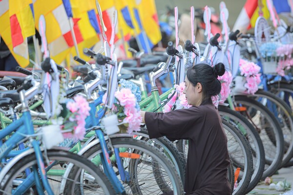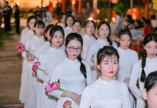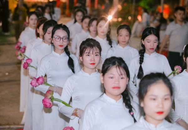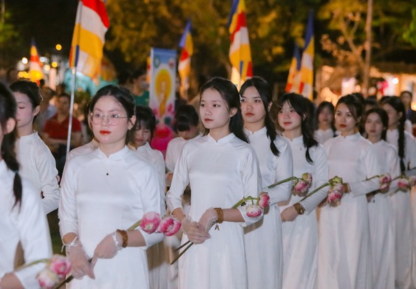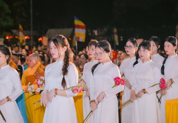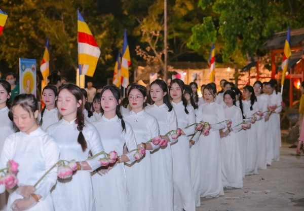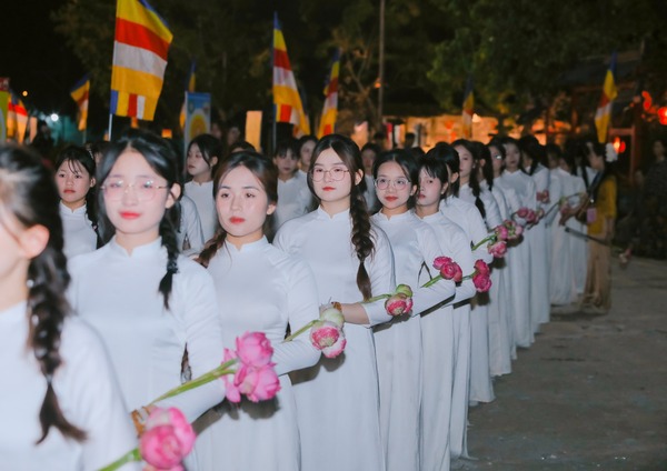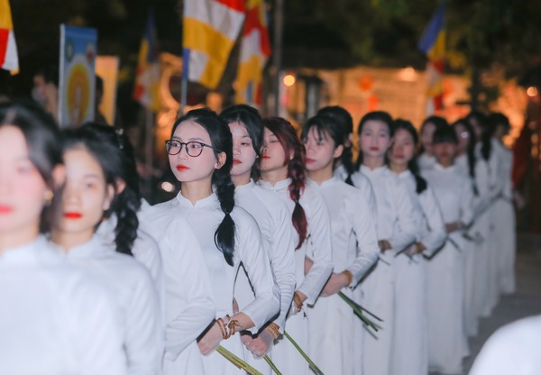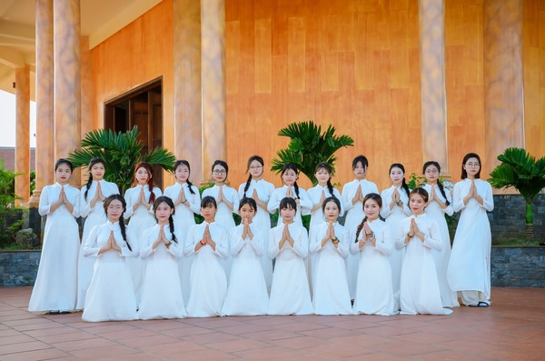Hình ảnh các bạn trong tà áo dài duyên dáng trang nghiêm, đã để lại ấn tượng tốt đẹp trong lòng quý Phật tử và khách thập phương.