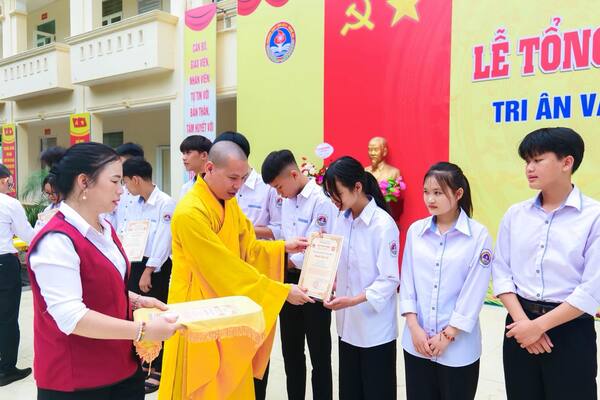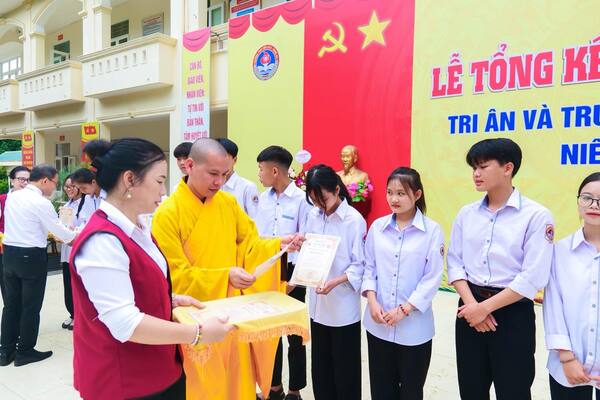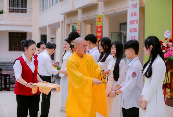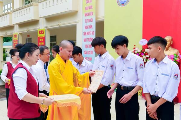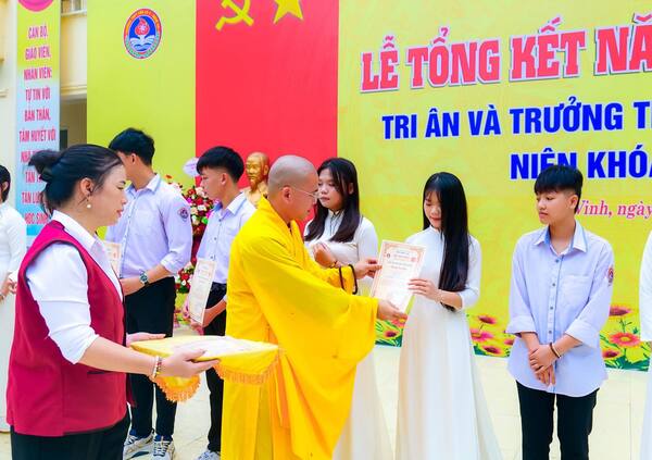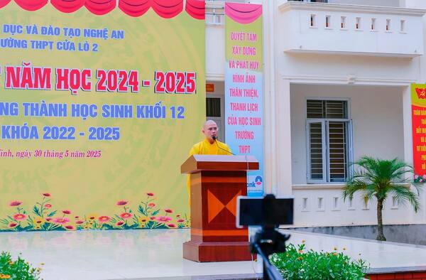 Sáng ngày 30/05/2025, tiếp nối hành trình thiện nguyện vì thế hệ tương lai, chư Tăng chùa Phúc Lạc, dưới sự chỉ dạy của Đại đức Thích Tâm Thành – Trụ trì chùa Phúc Lạc, đã đến dự Lễ Tổng kết năm học 2024–2025 tại Trường THPT Cửa Lò 2 và trao tặng học bổng “Nâng bước nhân tài” đến các em học sinh tiêu biểu.